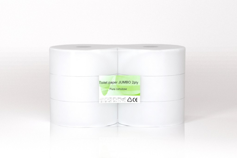 Bílý toaletní papír JUMBO z dvouvrstvé celulózy.