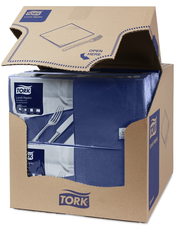 Třívrstvý obědový ubrousek Tork z celulozy, v barvě slonové kosti a kvalitě Advanced.